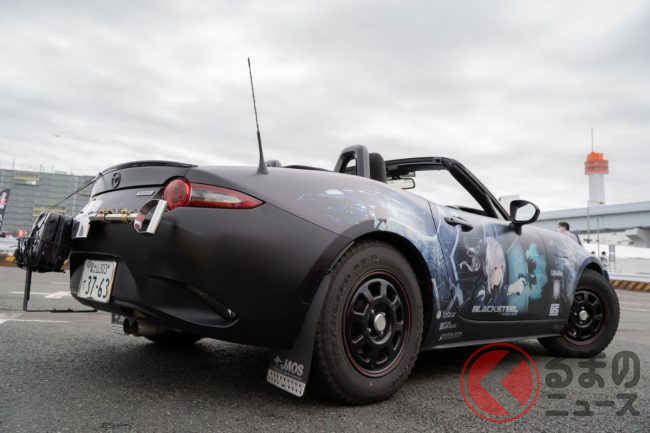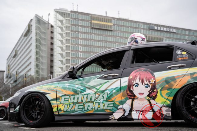 なかには、キャラクターを貼らずに、作品内に登場する学校や施設の保有するクルマという設定の「実在性重視」な痛車も人気です。