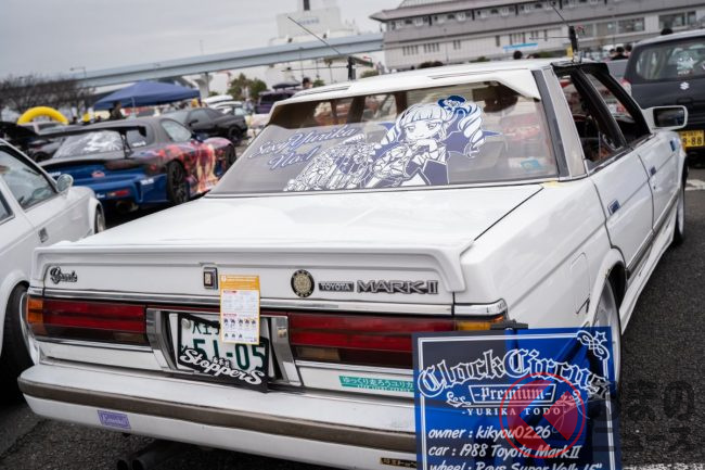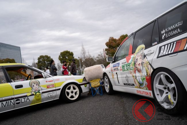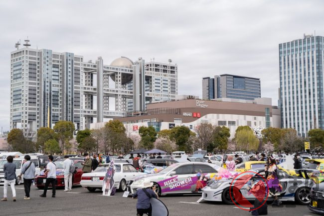 会場となった青海臨時駐車場に隣接する「東京国際交流館」や、痛車天国開催の同日に約22年半の歴史に幕を下ろした商業施設「ヴィーナスフォート」なども作品内にたびたび登場しており、ファンにとっては聖地巡礼と痛車見学の両方を一括で行える素晴らしいロケーションとなりました。