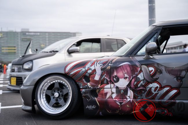 また、展示されている痛車の傾向としては必ずしも流行と比例するものではないにしろ、コンテンツとしては昨今人気の「ウマ娘 プリティーダービー」に登場するウマ娘や、バーチャルYouTuberなどを貼った痛車が目立っていました。