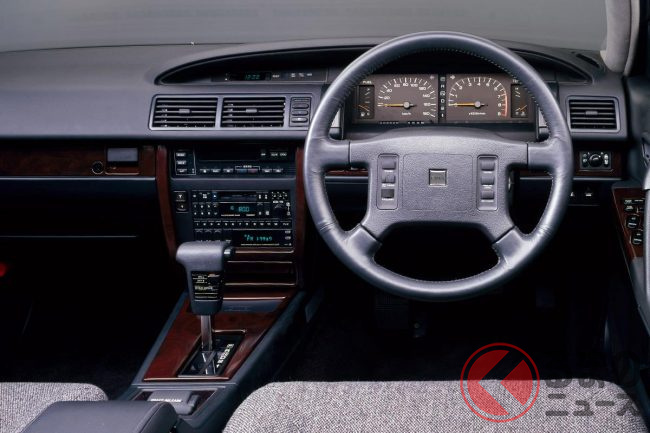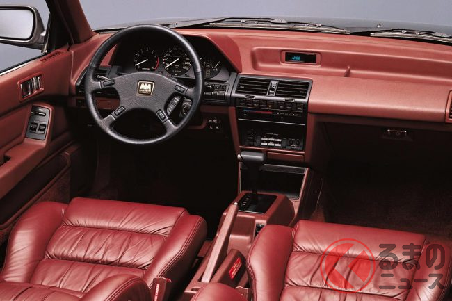 内装は比較的シンプルなデザインながら快適装備は充実し、当時普及が始まったばかりの高額な自動車電話もオプション設定されるなど、バブル景気ならではといえました。