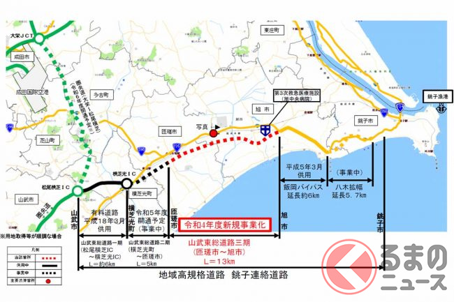 千葉の「銚子連絡道路」さらに東へ! 旭市までの13km区間がいよいよ事業化