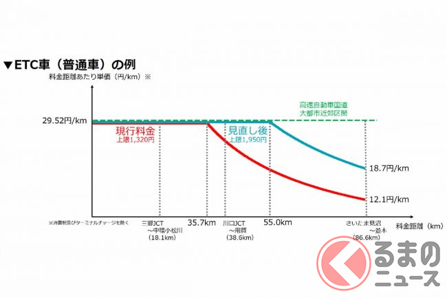 今回の料金改定で上限料金が値上げされて、普通車は1320円→1950円となっています。