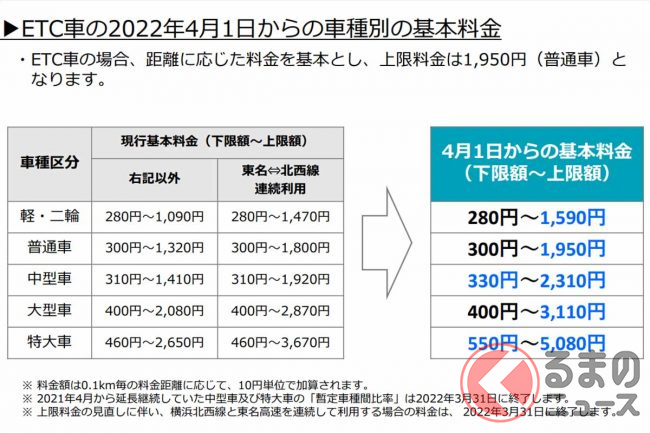2022年4月1日午前0時から首都高料金が大きく改定されました。
