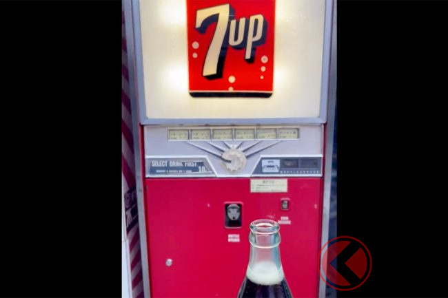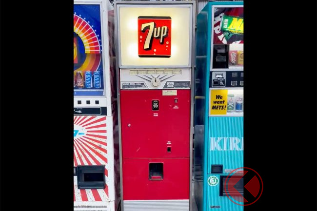 動画も投稿しており、そこには中央に「7up(セブンアップ)」のロゴが配置された、レトロな風合いのビン飲料の自販機が映し出されています。