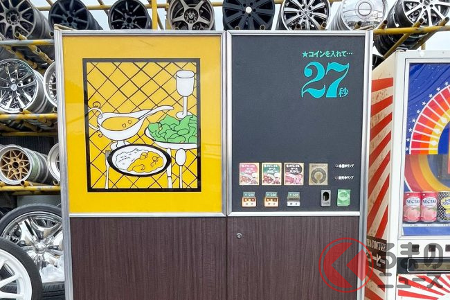 「懐かしい〜!」 タイヤ販売店のオシャレな「自動販売機」とは?