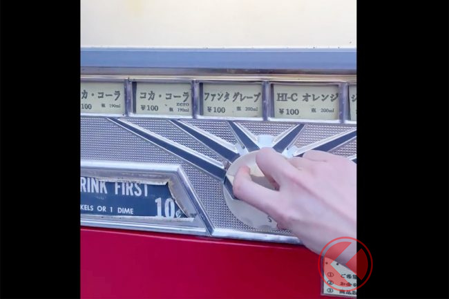 自販機にはウーロン茶やジンジャーエール、コカコーラなどいくつか種類が並んでおり、動画ではえぬびいさんが実際にお金を入れてコーラを購入しています。