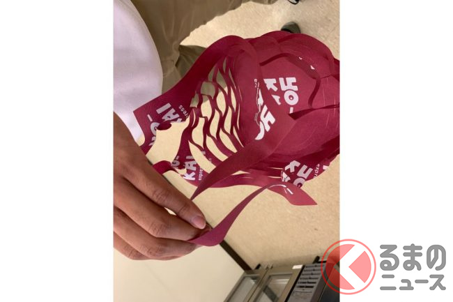 そして感動したのは、持ち運び用の袋が設置してあったことです。不織布で作られたロゴ入りの袋(というか、1枚の布状になっています)にラーメンをセットして、簡単に持ち運べます。