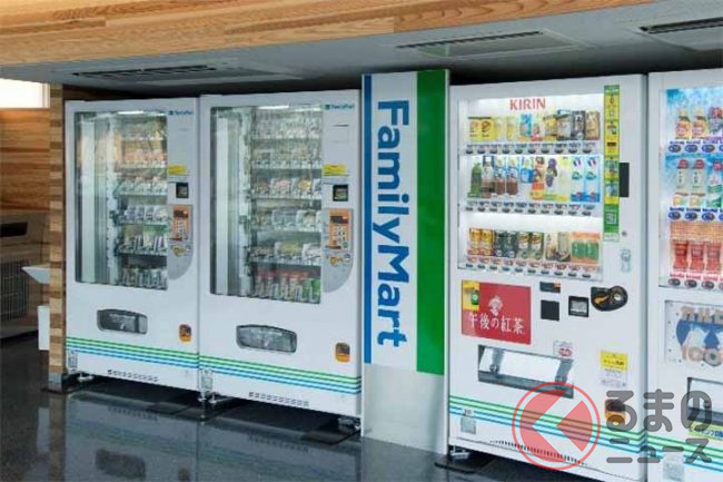 施設は無人ですが、サンドイッチやおむすびなどの軽食、デザートなどを販売する自販機コンビニ(ファミリーマート)を設置。