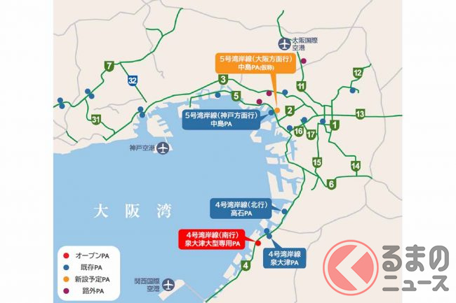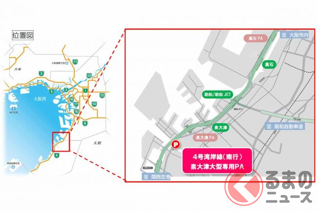 新PAが阪神高速に誕生! 湾岸線南行にできる「泉大津大型専用PA」の特徴とは?