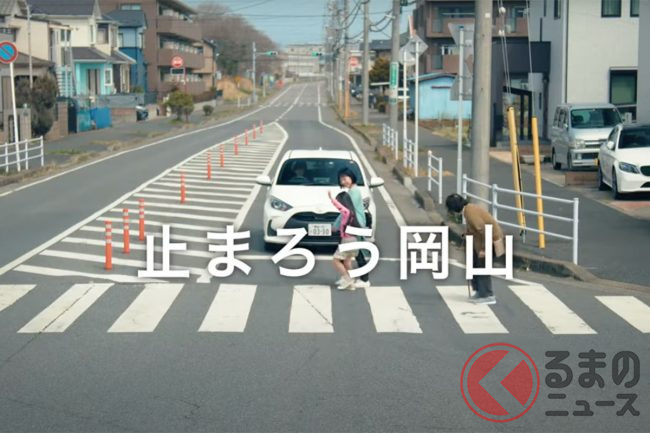 これを受け、「信号機のない横断歩道でのクルマの一時停止」をテーマに、岡山トヨペットが地元岡山県の意識改革を目的に、啓発動画を製作。