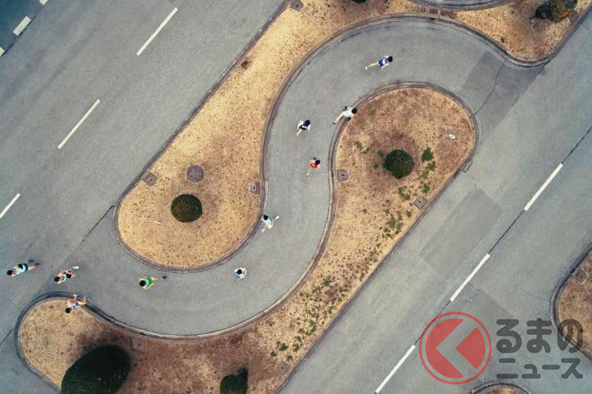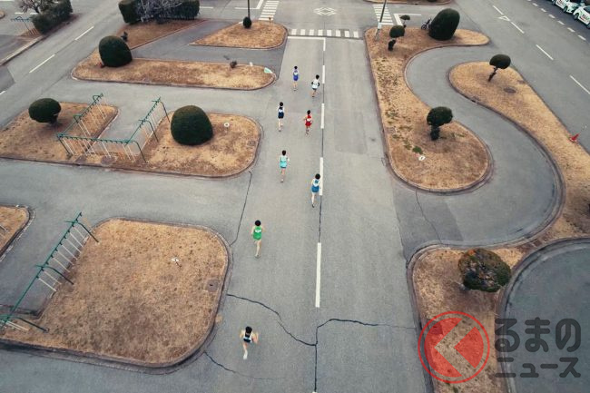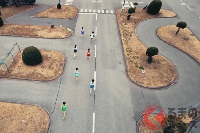 1分の動画は自動車教習所内でのマラソン大会が舞台となり、都道府県を想起させるゼッケンをつけた選手がそれぞれ走り出します。