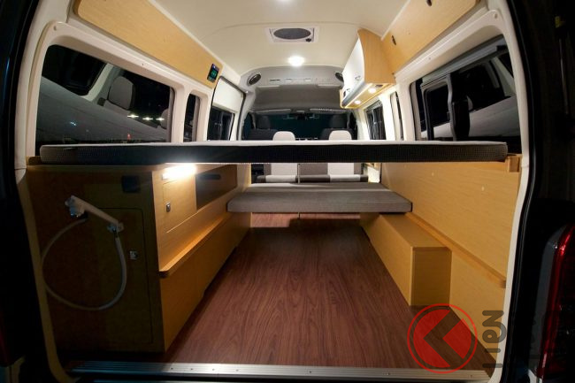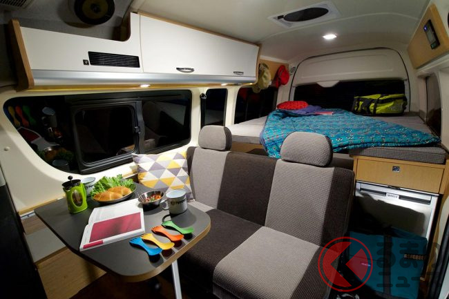 また、清水・排水タンクを備えたシンク、脱着式テーブル、ベッドマットも標準装備したほか、バンライフを快適にする冷蔵庫や電装システムなどさまざまなオプション装備も揃えています。
