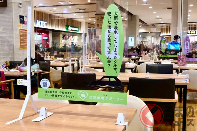 トヨタの公式LINEアカウント「防災給電サポーター」が、イオンモール幕張新都心(千葉市美浜区)のエレベーターとフードコートの飛沫感染予防アクリル板に、防災クイズ広告「もしも模試」の掲出を始めました。