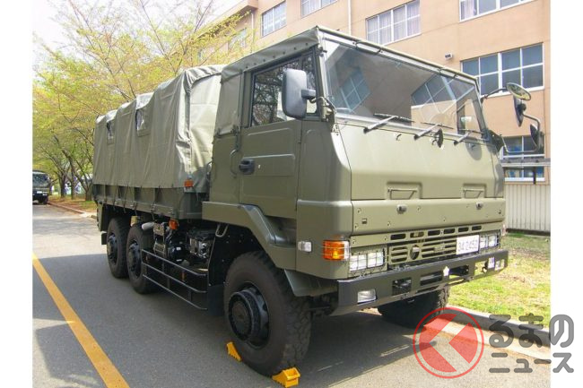 平時でも公道で多く見かける自衛隊の車両といえばオリーブドラブに塗装された大型トラックではないでしょうか。地味ながら無くてはならないワークホースです。