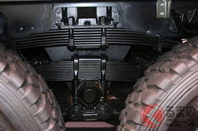 商用トラックではサスペンションは積載物の荷重を強く支えられればよいのですが、人が乗るからには衝撃を抑える必要もあります。
