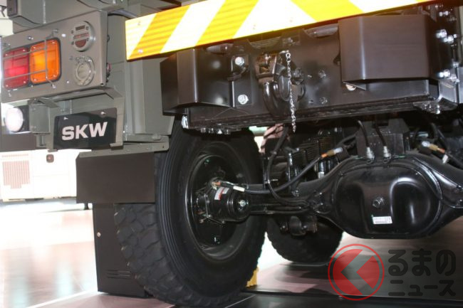 一方でミリタリースペックでは泥濘地の走破性や荷台に人を載せるという商用トラックでは考えられない仕様も要求されます。