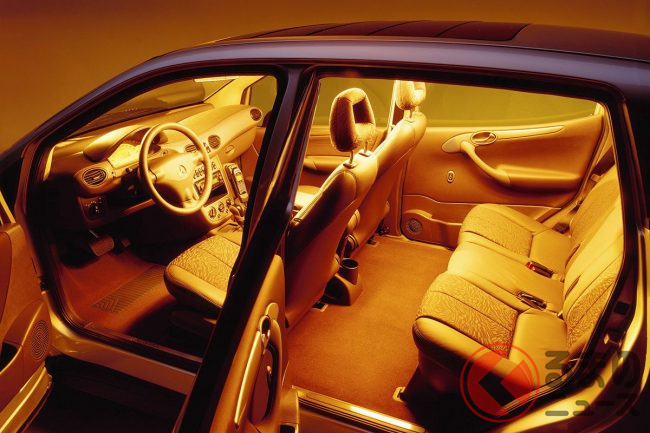 初代Aクラスは二重フロア構造のため、乗員は比較的に高い位置に座ることになり、そのため高齢者でも乗降がラクというメリットもありました。また室内も広く、大人5人がゆったりと座れる空間を確保していました。