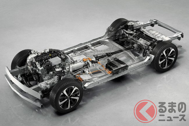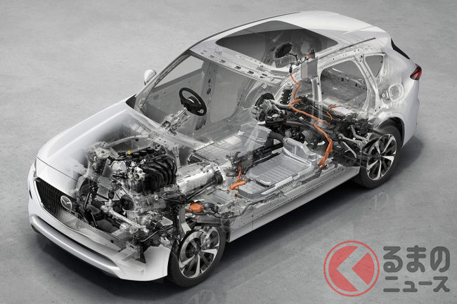 PHEVのユニットは、すでにCX-8やCX-5などに採用されている2.5リッター 直列4気筒ガソリンエンジン「SKYACTIV-G 2.5」をベースに吸排気系をチューニングし、大きなモーターと大きなバッテリーを組み合わせました。