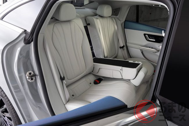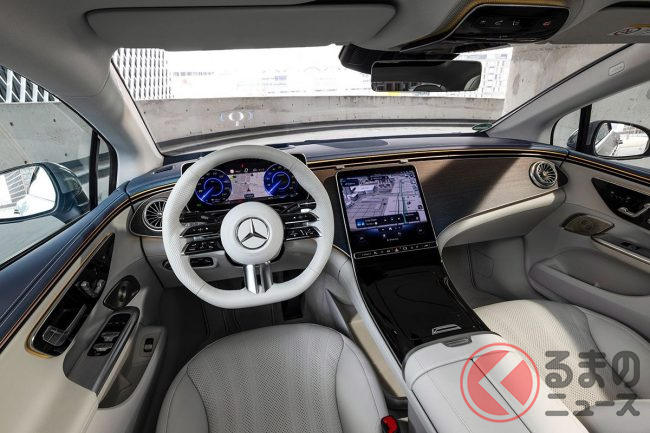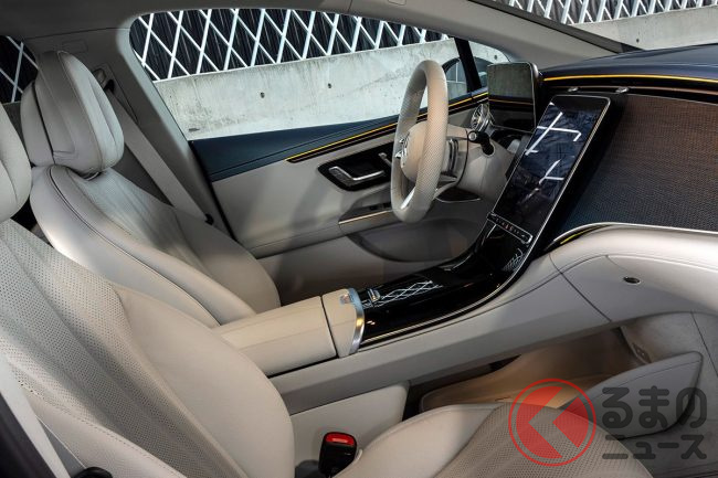 EQSやEQEは流麗なルーフラインが特徴的で、まるでクーペのようですが、SクラスやEクラスはリアウィンドウとトランクの間に明確な“折れ曲がり”があり、いかにもセダンらしい形に仕上げられています。インテリアにしても、EQSやEQEのほうが現代的で、SクラスやEクラスの落ち着いた雰囲気に比べると、より華やかに見えます。