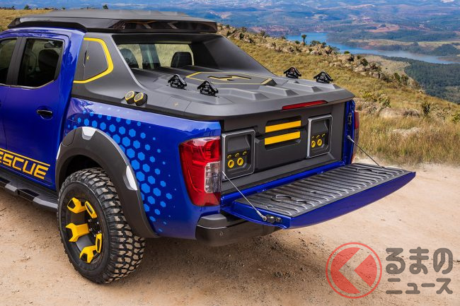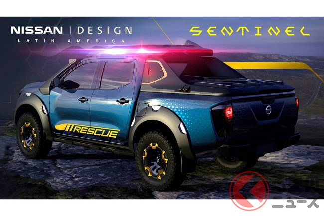 すげぇ! ドローン発着可な日産レスキュー車「フロンティアセンチネル」がカッコいい 伯で発表されたタフ顔仕様とは