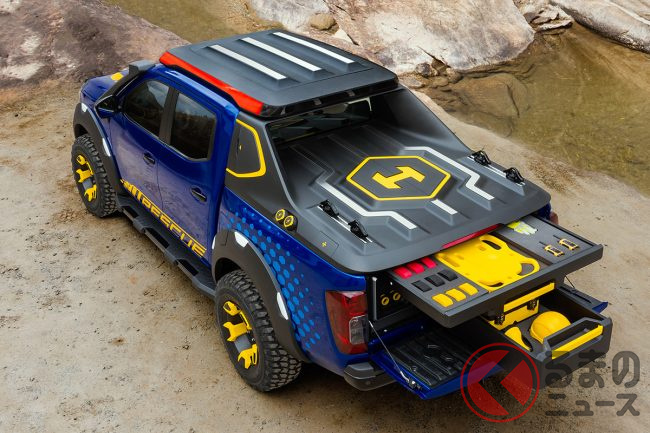 日産「フロンティア」をレスキュー仕様にした「フロンティアセンチネル」は、ドローンの収納スペースを搭載。さらに、ロープ、斧、フック、工具箱などを保管できる電動ボックスも! どんなクルマだったのでしょうか。