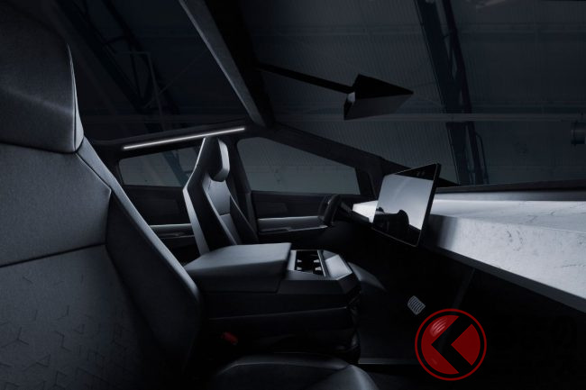 こうした直線基調のデザインとなった背景には、サイバートラックのボディが「ウルトラハード 30X コールドロール ステンレススチール」というステンレス合金を採用しているという事情があります。