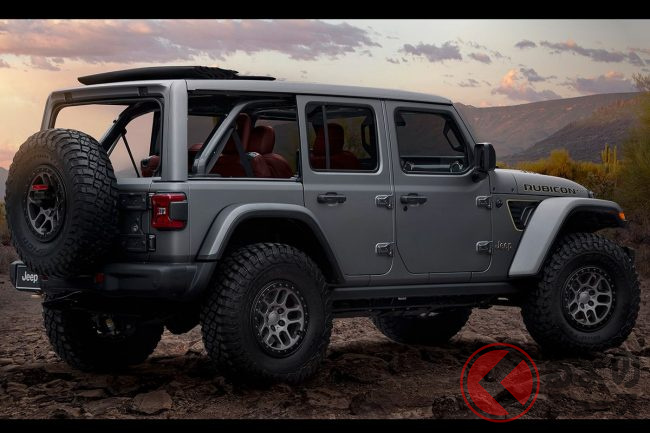 このモデルは、2ドアの「ラングラー・ルビコン」をベースにしたモデルで、285馬力・370Nmと3.6リッターV型6気筒「ペンタスター」エンジンに匹敵するモーターを搭載。