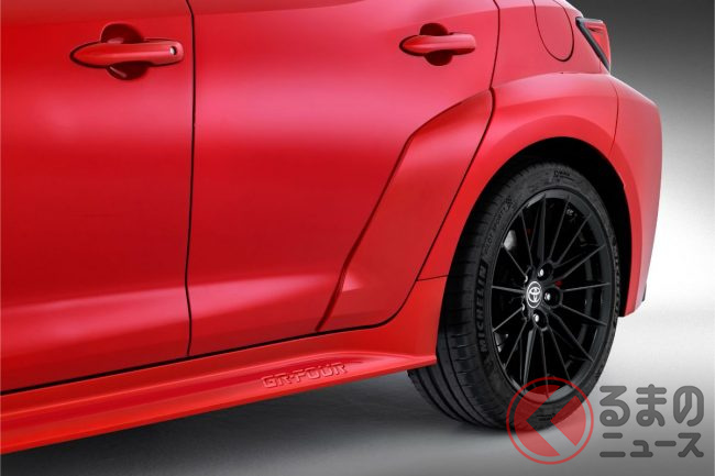 エクステリアはベースとなる「カローラスポーツ」と比較して、フロントフェンダーを片側20mm、リヤフェンダーを片側30mm拡大。