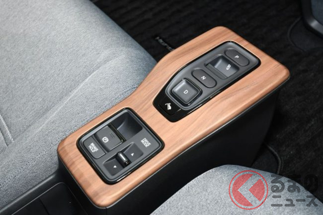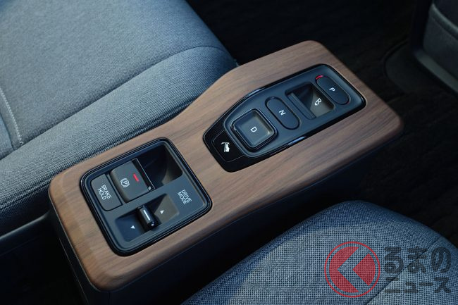 メーター前のインパネ上やシフトノブまわりには無垢材調の木目パネルが装着され、クルマでありながらソファに座りながらリビングでくつろいでいるような室内空間が実現されています。