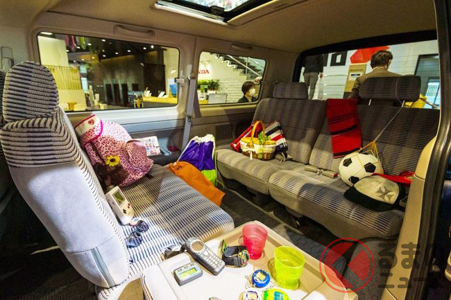 当時はグレード別で「回転対座式」と「ポップアップ式」の2種類のシート設定があり、とくに2列目に補助席をもつ回転体座式のシートでは、2列目・3列目で向かい合わせに座れるようなアレンジも可能。