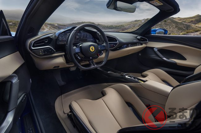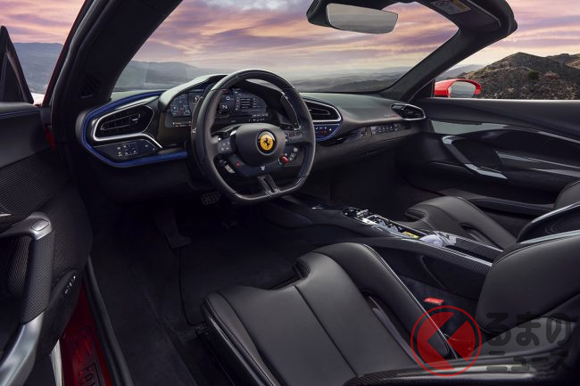296GTSは、すでに発表済みの2ドアクーペ「296GTB」のオープントップ・バージョンになります。リアミッドに搭載するパワートレインは、296GTBと同じ3リッターV型6気筒ツインターボ+モーターのプラグインハイブリッド(PHEV)で、トータルの最高出力は610kW(830馬力)、最大トルクは740Nmを発生。トランスミッションは8速DCTが組み合わされ、後輪を駆動します。