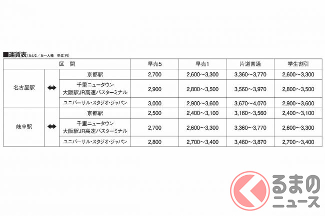 区間は名古屋駅~ユニバーサル・スタジオ・ジャパン(USJ)間で、途中は岐阜駅や京都駅、千里ニュータウン(大阪府豊中市・吹田市)、大阪駅を経由します。