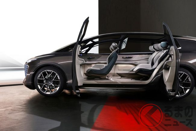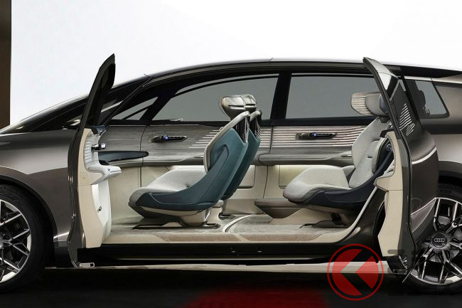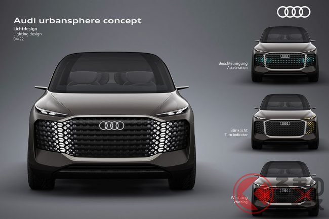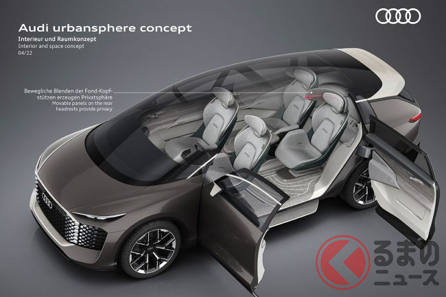 5.5m巨体のギラ顔!? 斬新ドア採用の高級新型ミニバン「アーバンスフィア」がスゴい 独アウディが新車発表