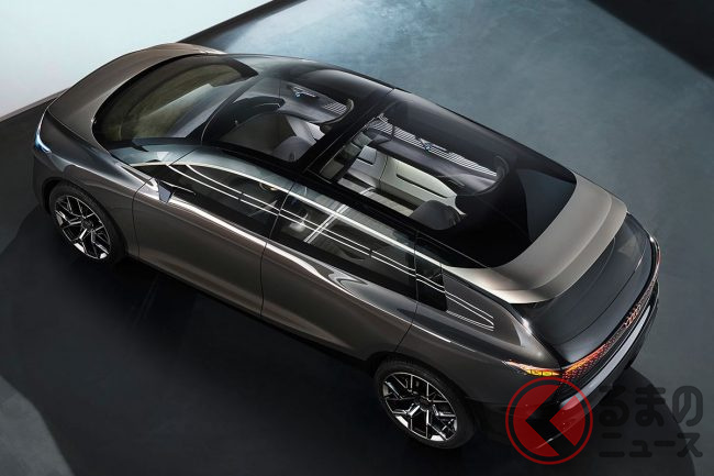 外観は、従来のクルマのフロントグリル部にあたるボディのフロント側およびテールゲート側に、大型デジタルライトを装着。デザイン上の特徴にもなっているこのライトは、コミュニケーションエレメントとしても機能するということです。