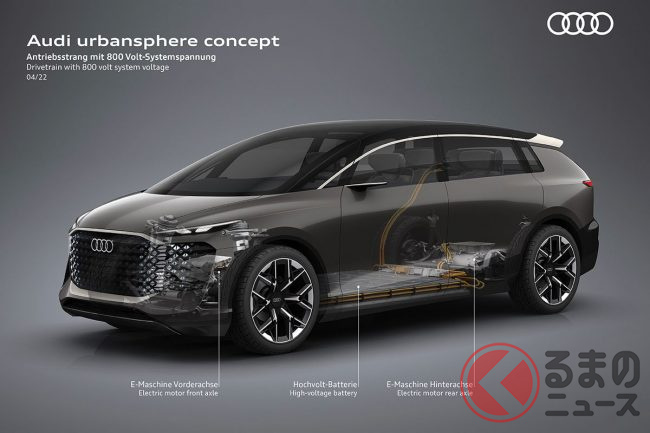 アーバンスフィアはミニバンタイプのコンセプトカーですが、アウディの市販モデルを見ると、電気自動車では「e-tron(イートロン)」など、搭載されるシステムと車種名が連動する場合が少なくありません。