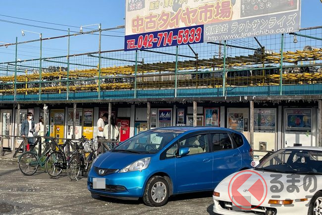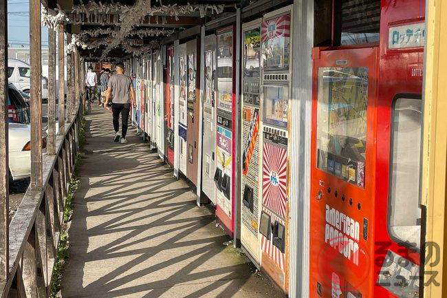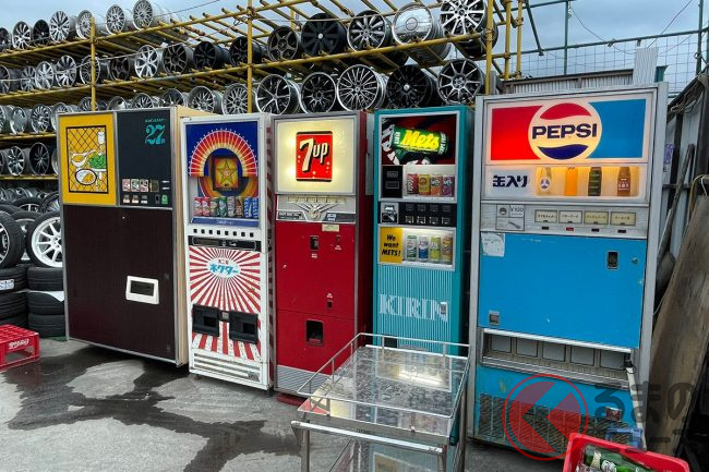 そんななか、神奈川県相模原市にある「中古タイヤ市場」にも多種多様なレトロ自販機が立ち並んでいます。