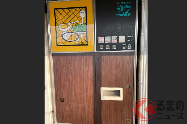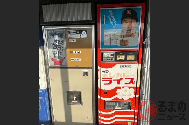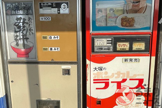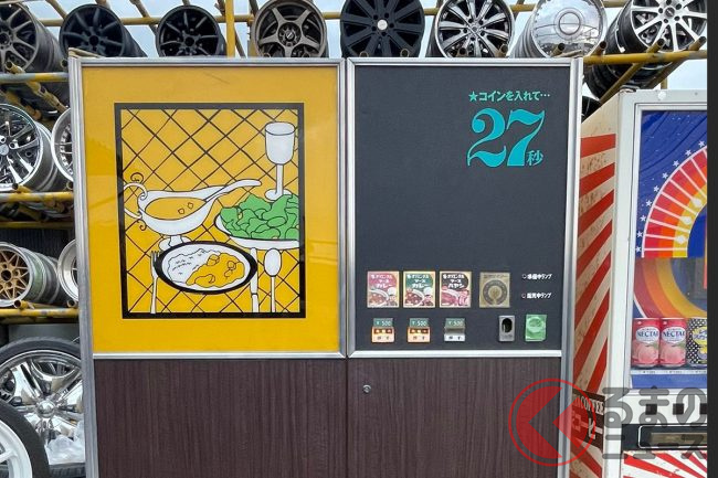 うどん、ラーメン、ハンバーガーも!? タイヤ店のレトロな “グルメ自販機”がスゴい! 100台以上ズラリ 幻のカレー自販機も復活!?