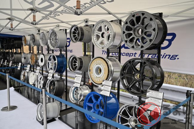 今回初開催となるこのイベントは、RAYSホイールを愛用するユーザーへの感謝の気持ちと共に、ユーザー同士の交流の場を設けるという意味合いや、RAYSの歴史を知ってもらう機会を提供するという意味合いも持っているといいます。最新のホイールを装着したデモカーやRAYSホイールを採用しているレーシングカーだけでなく、往年のレジェンドホイールの展示も実施しており、若い世代からベテラン勢まで楽しめるものとなっていました。