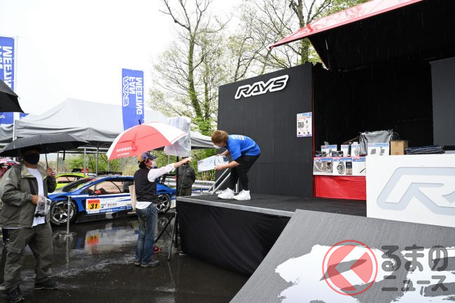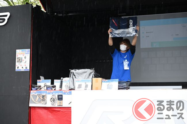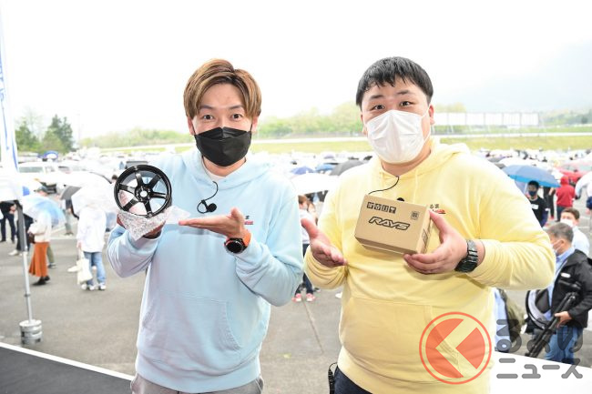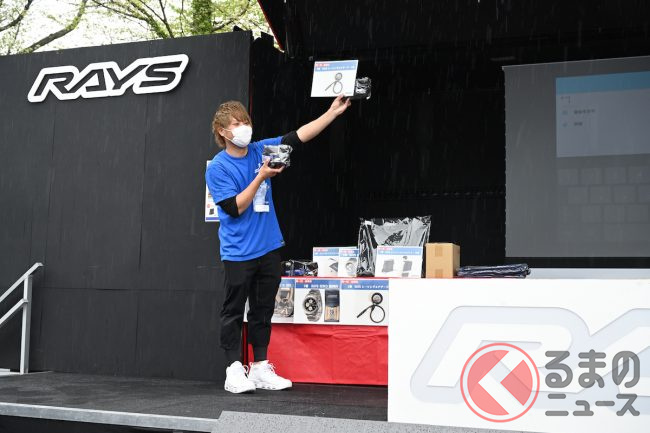 またイベントでは大抽選会も実施され、2000円以上のお買い物をした人が抽選に参加できたほか、参加者全員を対象としたものもあり、景品もRAYSのオフィシャルギアであるバッグやチェアといったものから、非売品のコラボウォッチにTE37のミニチュアレプリカホイールなど、RAYSファンであれば喉から手が出るほど欲しいものばかり。