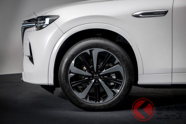 詳しく比べてみると、全長で165mm、全幅で45mm、ホイールベースで170mm、それぞれ新型CX-60のほうが大きなサイズとなります。