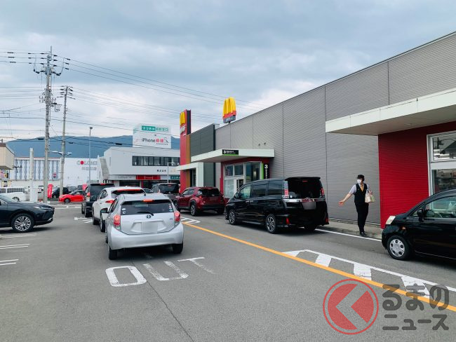 そんなコロナ禍では、クルマに乗ったまま商品を購入し受け取れる「ドライブスルー」の需要が高まり、多くのクルマがドライブスルーの列に並ぶ「ドライブスルー渋滞」が各地で発生。