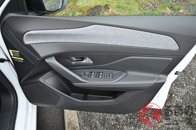 今回試乗した308アリュール(1.2リッター直列3気筒・ガソリン)と308GT BlueHDi(1.5リッター直列4気筒・ディーゼル)の内装は黒基調でしたが、ここに組み合わされるグレーの色調がなんともオシャレだったほか、要所要所にアルミパネルが組み合わされていたり、差し色のステッチが入っていて、どこか気分を明るくしてくれるようなデザインに仕上がっていました。また、パーツ類の精度感が高いことも印象的。