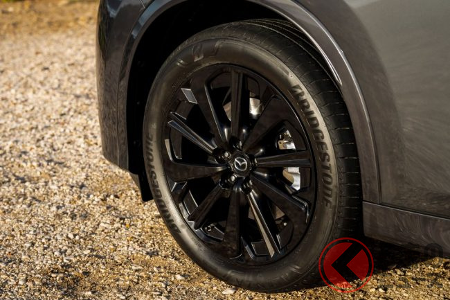 画像からは、2台のCX-60がドイツのワインディングを走る姿のほか、横長に光るリアテールランプ、フロントフェンダーに装着されるPHEVのエンブレム、車両後方右側にある充電ポート、ブリヂストン社製アレンザの20インチタイヤ、ボンネット内のエンジンカバーなどが確認できます。