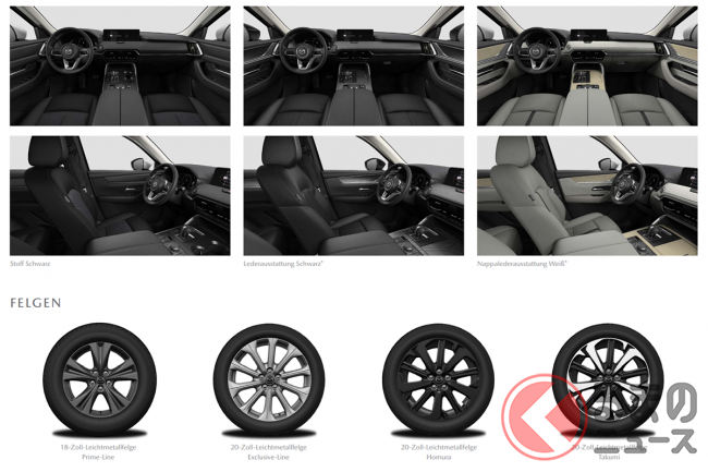 またドイツ仕様のCX-60のグレード名、ホイールやボディカラーラインナップなども発表されています。