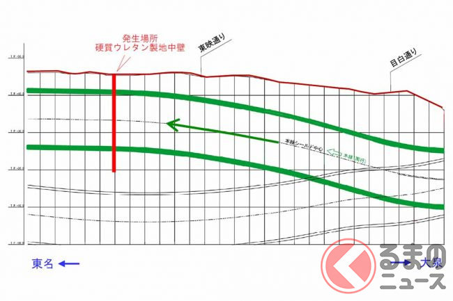 今回のような硬質ウレタン製地中壁は、外環道(関越~東名)の現場で13か所が計画されており、このうち着手されている7か所については、壁とトンネルの位置に誤りがないことを確認しているとのこと。そして今後施工する6か所についても同様に確認していくということです。
