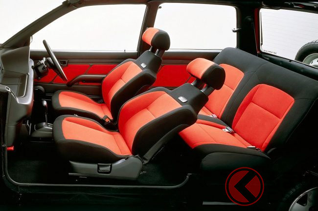 そして1991年には斬新な派生車の「リーザスパイダー」が登場。リーザをベースにルーフとBピラー、Cピラーをカットして荷室部分をソフトトップの収納場所とし、リアシート部分を荷室として使うことで2シーター化されました。