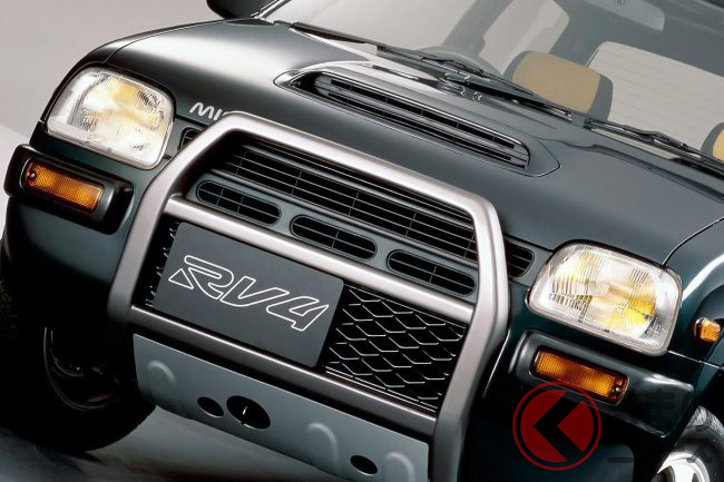 現在、軽トールワゴン/ハイトワゴンにSUV風なモデルがラインナップされ人気となっていますが、今から30年も前に登場したミラ RV4は、そうしたモデルの先駆けといえました。
