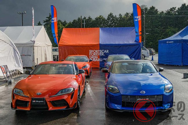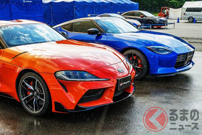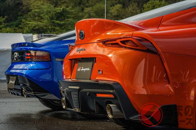 夢の新型2ショット実現! 赤い「GRスープラ」&青い「フェアレディZ」お披露目! 「Zには負けませんから」の勝負がアツい!