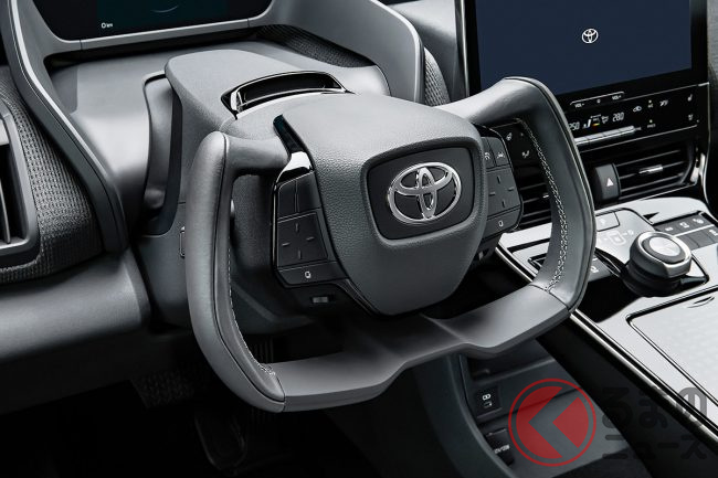 ちなみに、前述のbZ4Xコンセプト発表時に新型bZ4Xは異形ステアリング(ハンドル)を採用することで話題となりました。