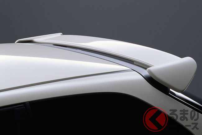 全長4180mm×全幅1695mm×全高1360mmのコンパクトなボディは、派手さを控えつつも高速安定性を高める前後アンダースポイラー&リアスポイラーが装着され、足元には7本スポークで5穴の専用アルミホイールに、195/55R15サイズのブリヂストン「ポテンザRE010」ハイグリップタイヤが採用されました。